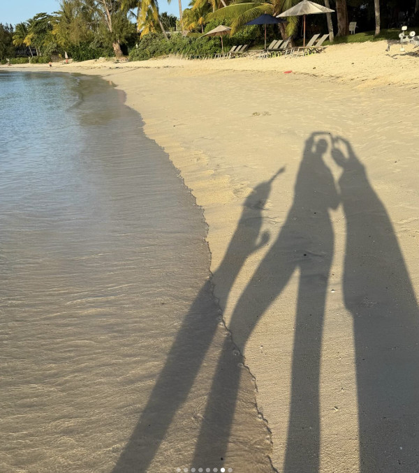 Mais c’est un détail bien précis qui a enflammé sa communauté : une photo montrant l’ombre projetée de « trois silhouettes » sur le sable fin. Si les internautes ont immédiatement reconnu les contours de ses enfants, la présence d’une troisième ombre masculine n’a laissé que peu de place au doute.