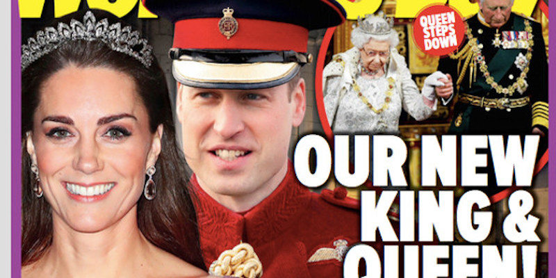 Elizabeth II qu’une rumeur affirme atteinte de cancer est censée les avoir propulsés sur le trône pour ménager le prince Charles, fragilisé par la maladie. Ce dernier aurait consenti à agir en super conseiller, une sorte de monarque bis.