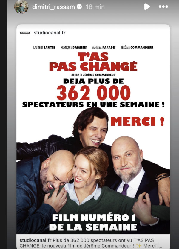 Dimitri Rassam s’est réjoui de ce succès sur son compte Instagram, annonçant des chiffres impressionnants : « Déjà plus de 362 000 spectateurs en une semaine ! Merci ! Film numéro de la semaine ! ».